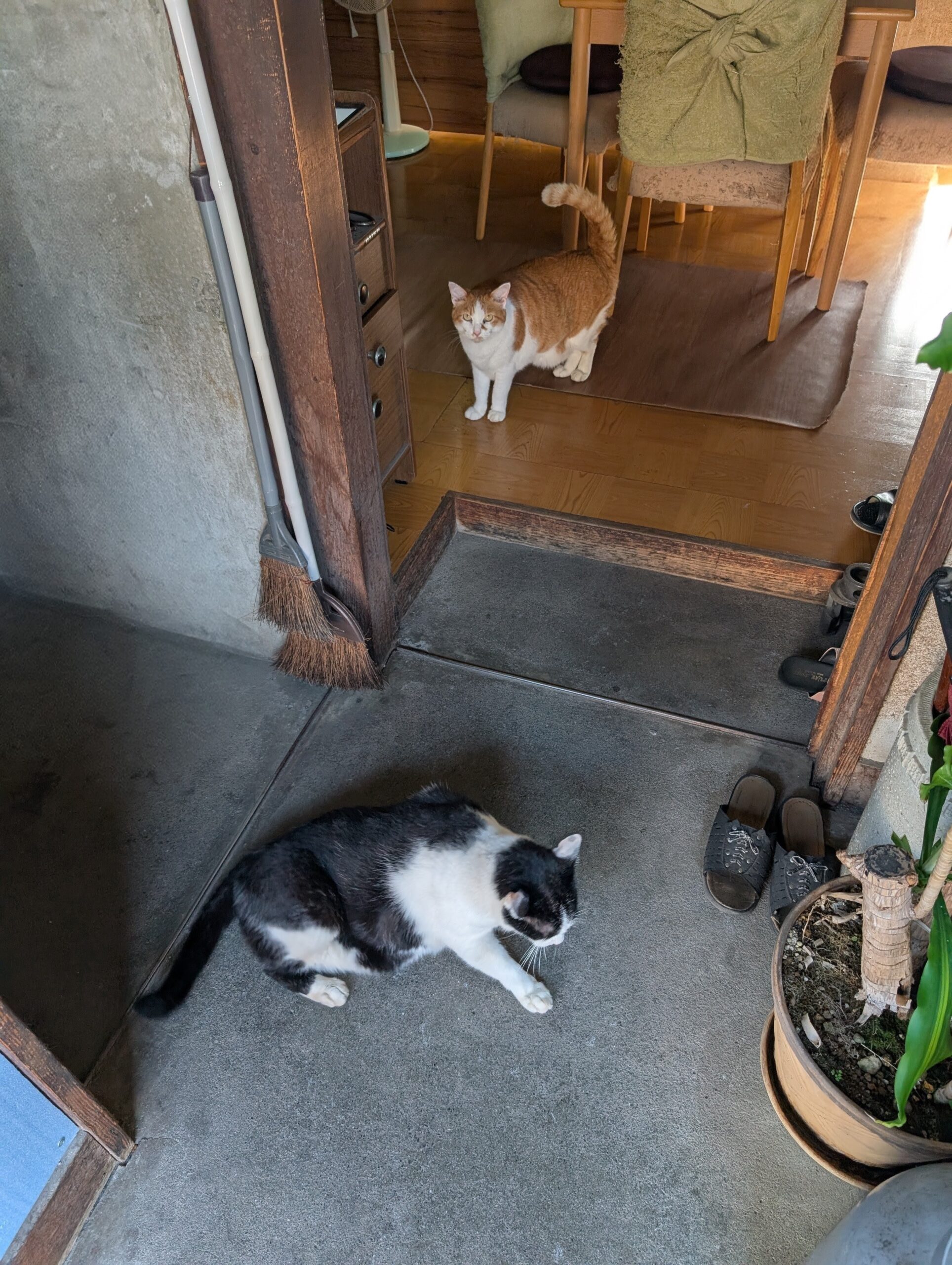 待ってましたのクロ、ドアが開くと一目散に入ってきました🐱