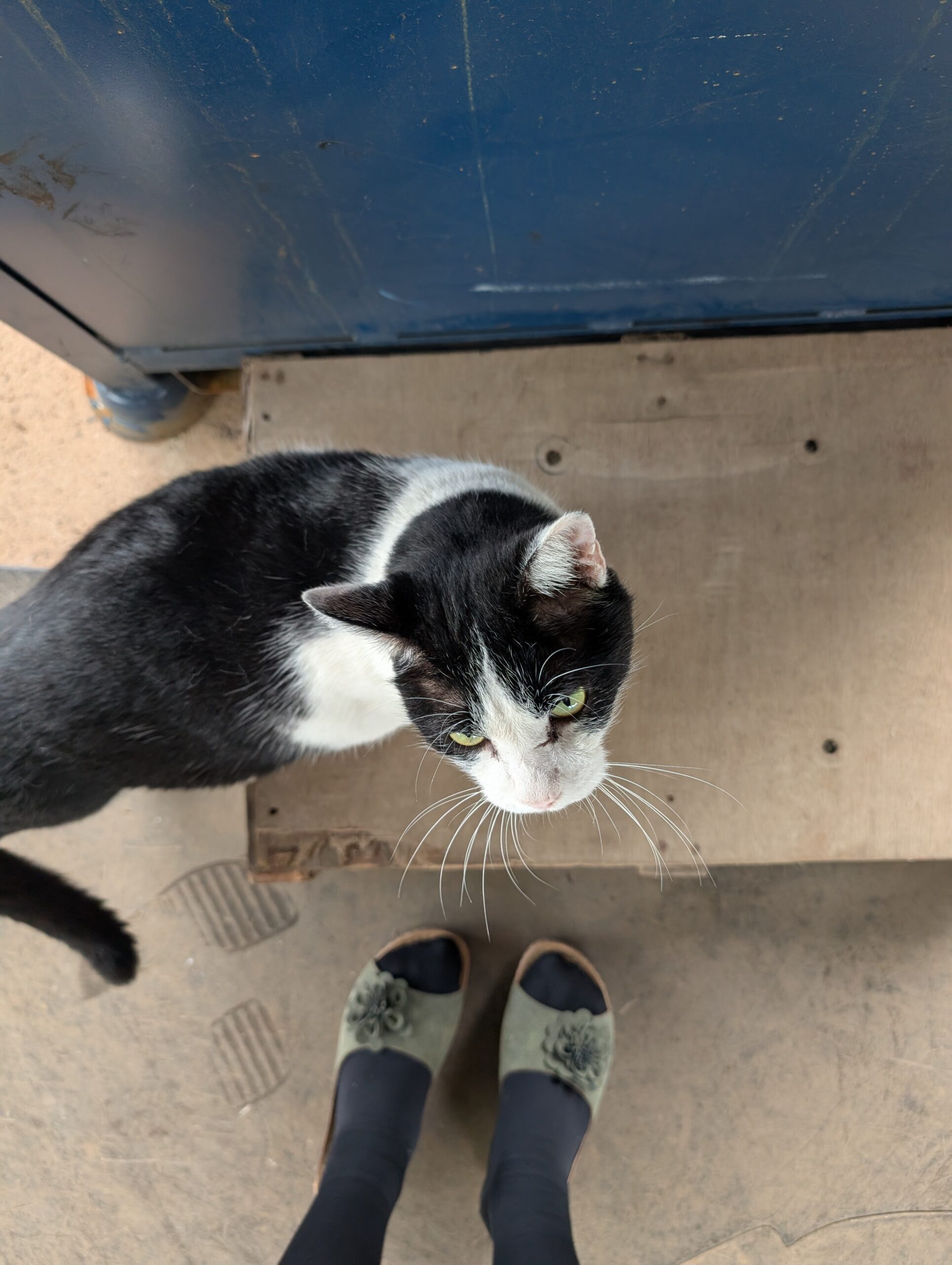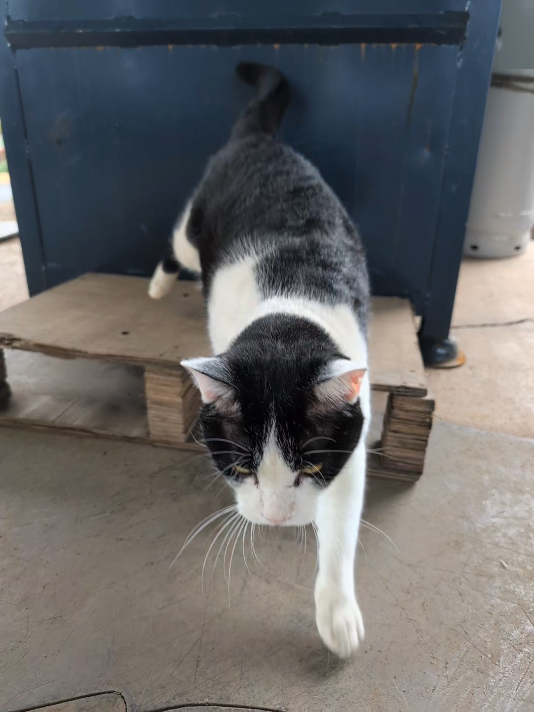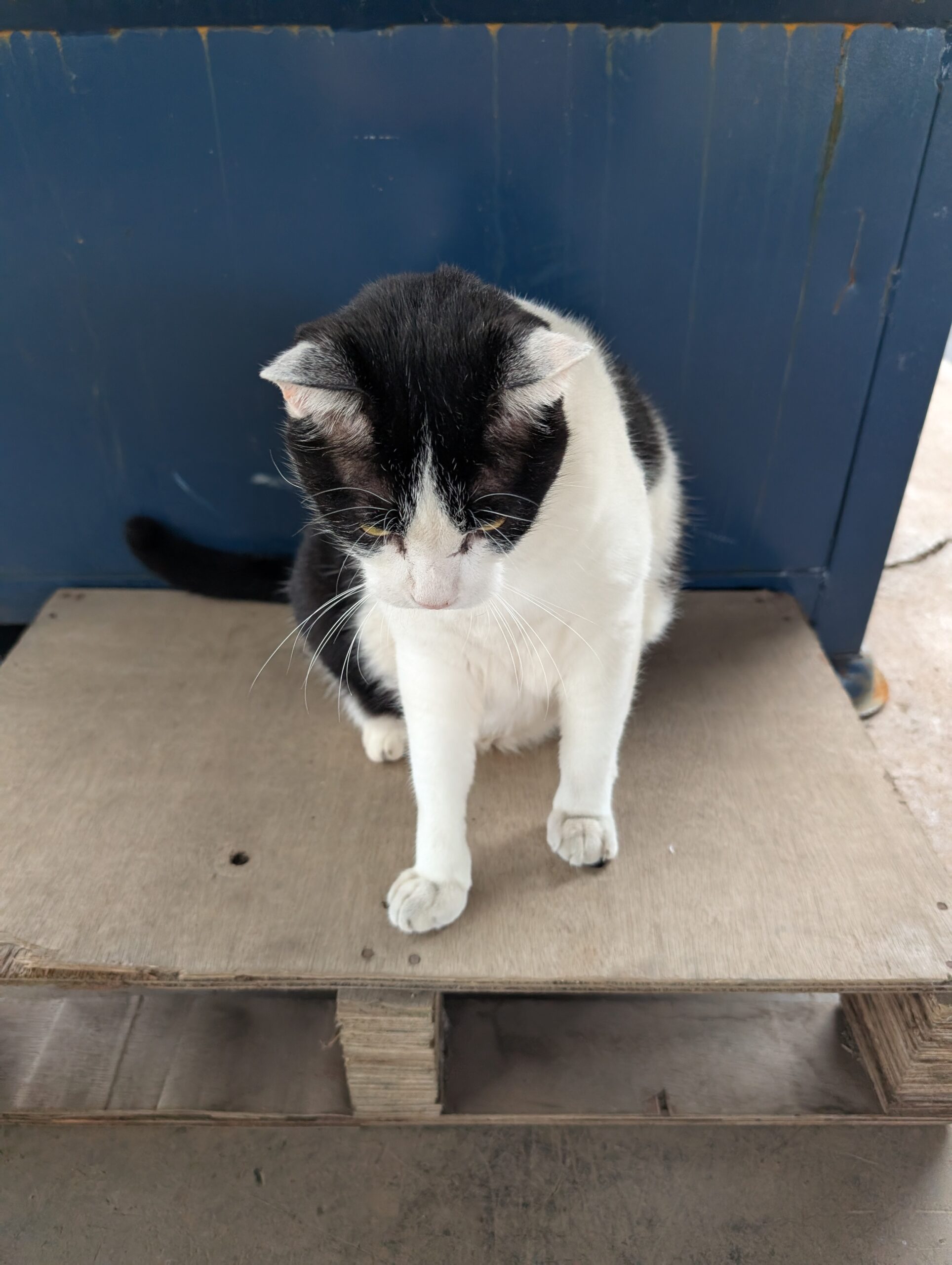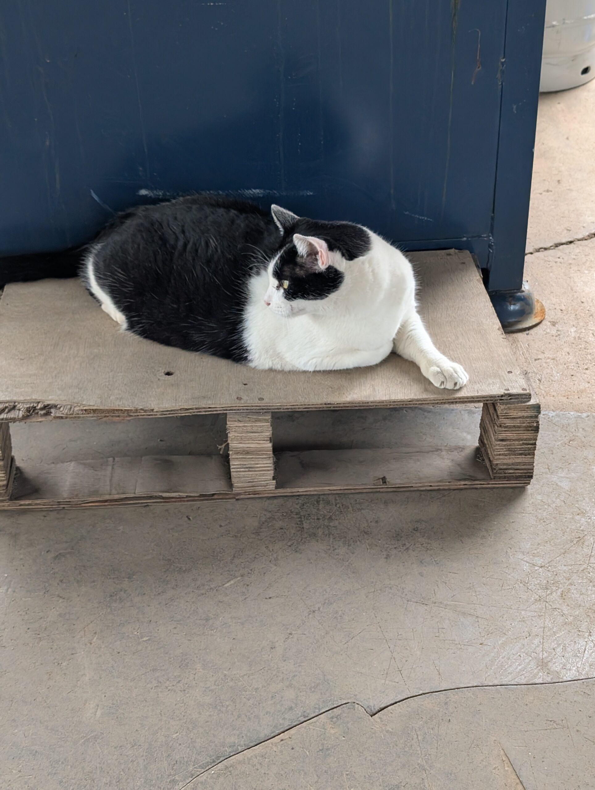 従業員が休憩時間中、人影のないある場所で、地域広報部長がパレットを壇上にして、優雅に寛いでいました😸‼️
