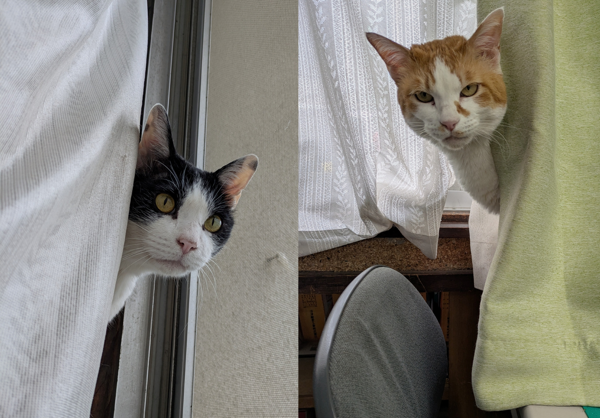 夏の間は、カーテンの中が日差しいっぱいで暑い為、居付かなかったカーテン裏・・・