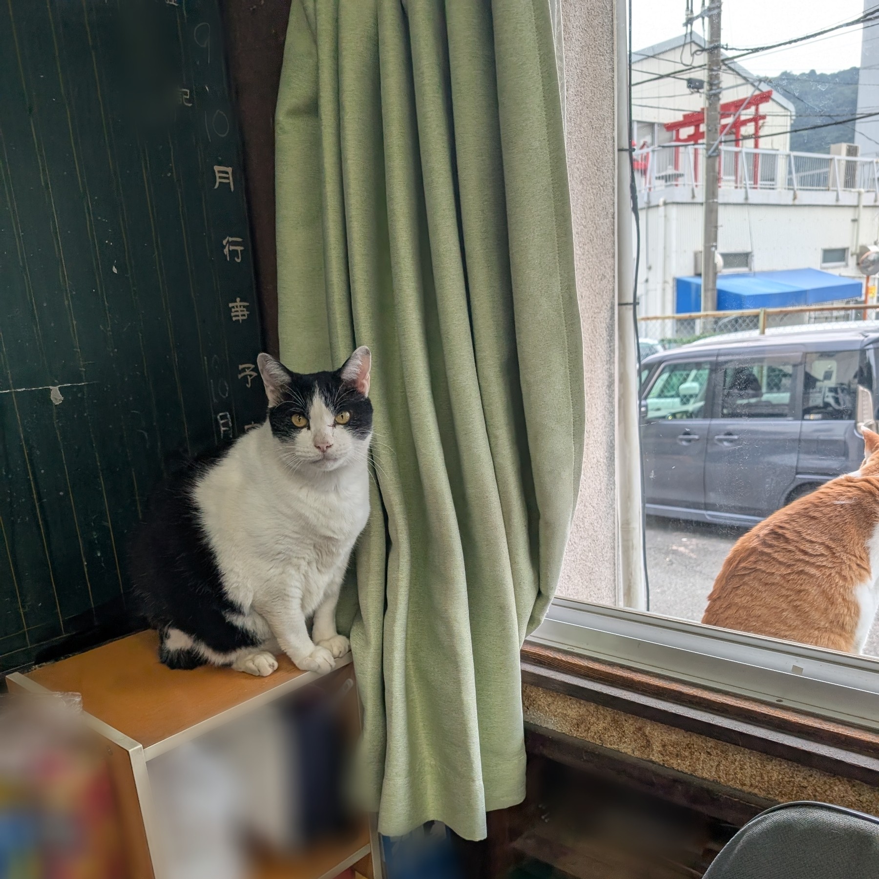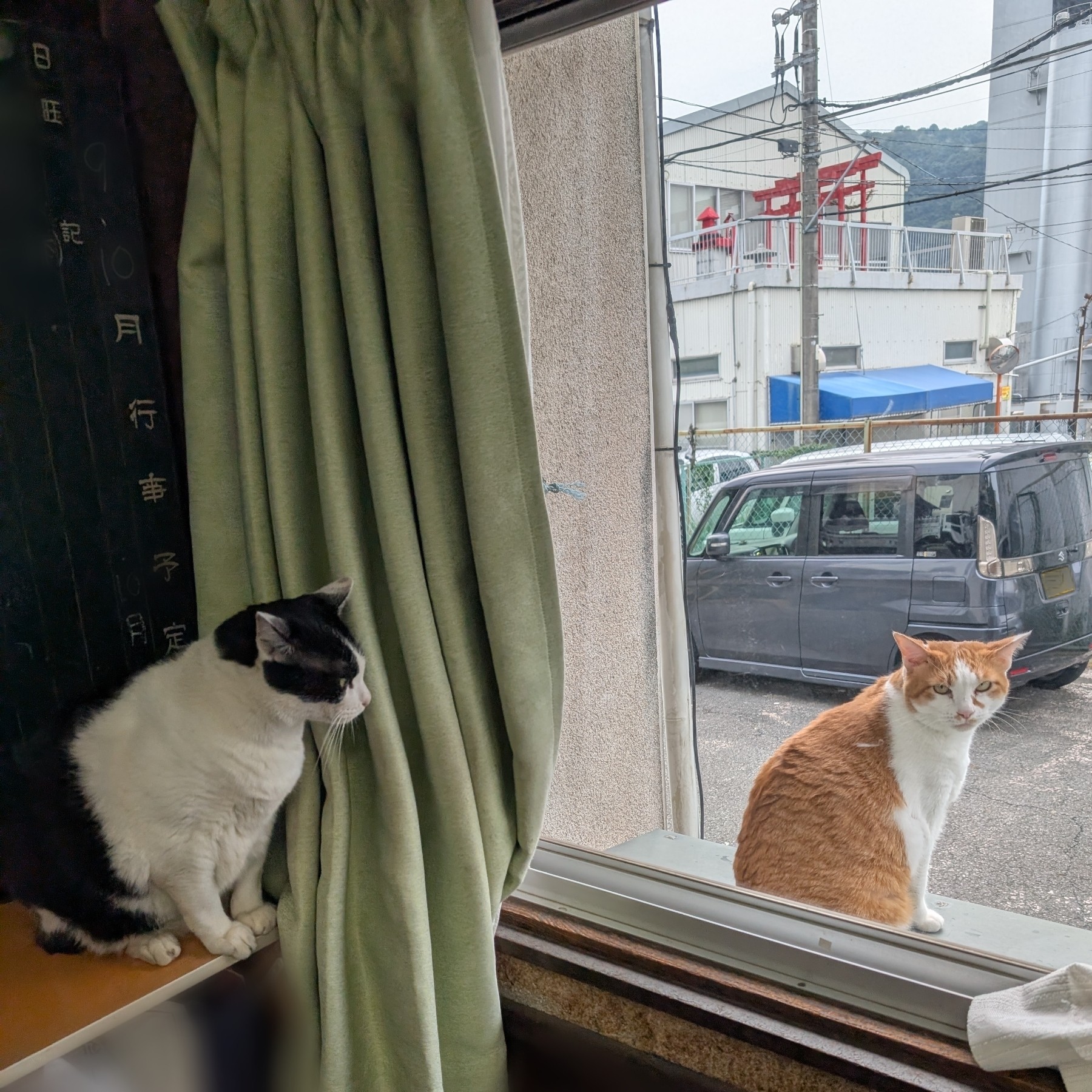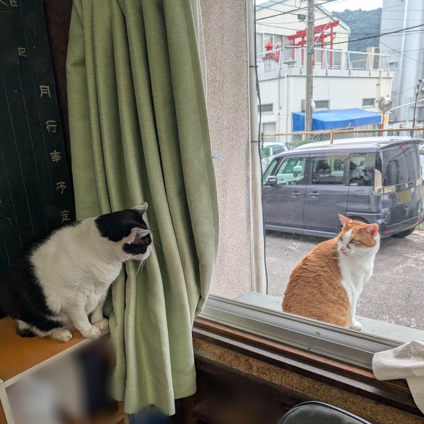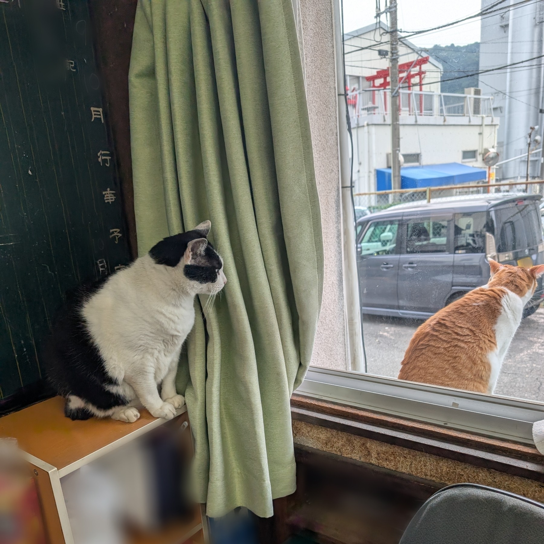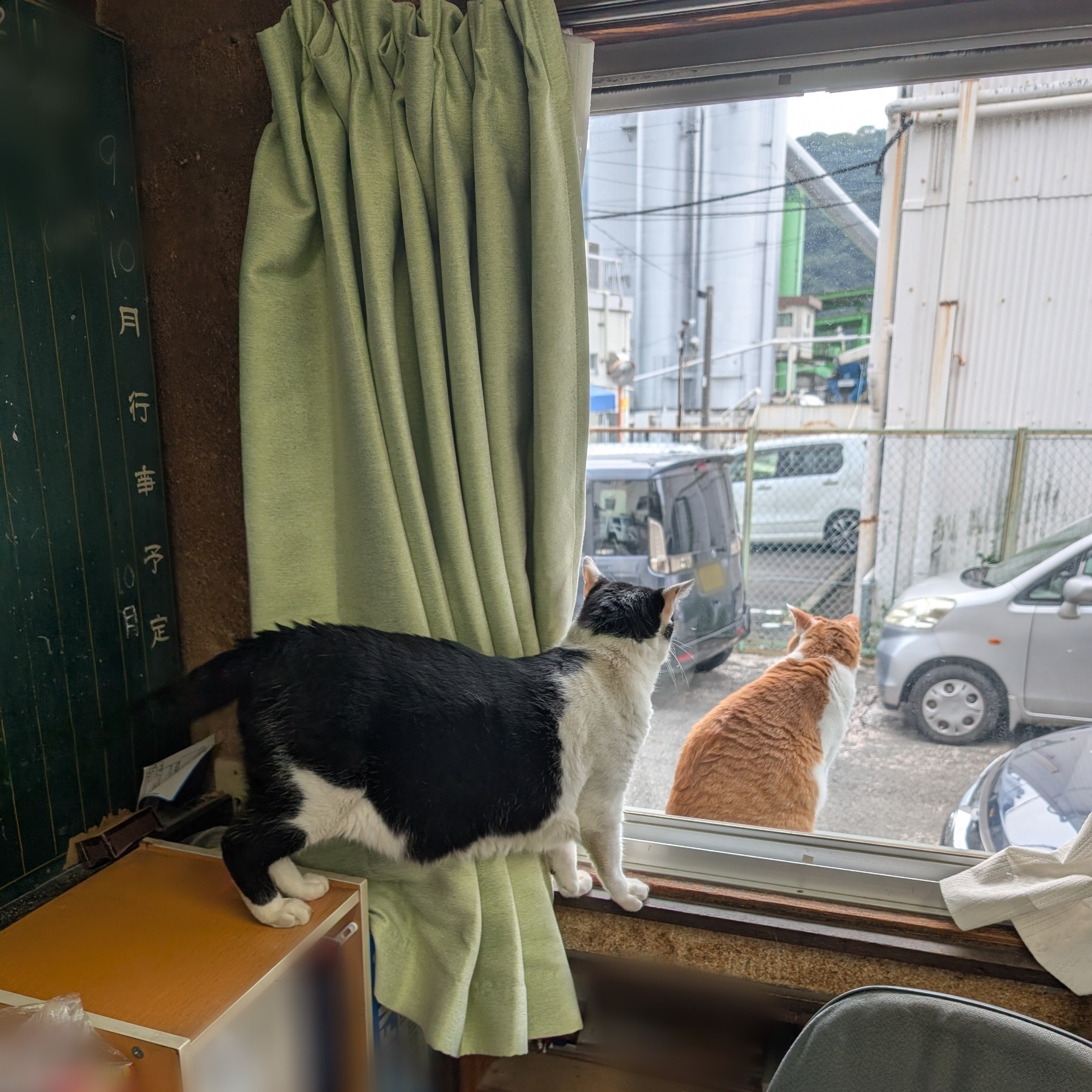 お外にいるチーコに気づき、クロも出たいそぶりをしていました🐾