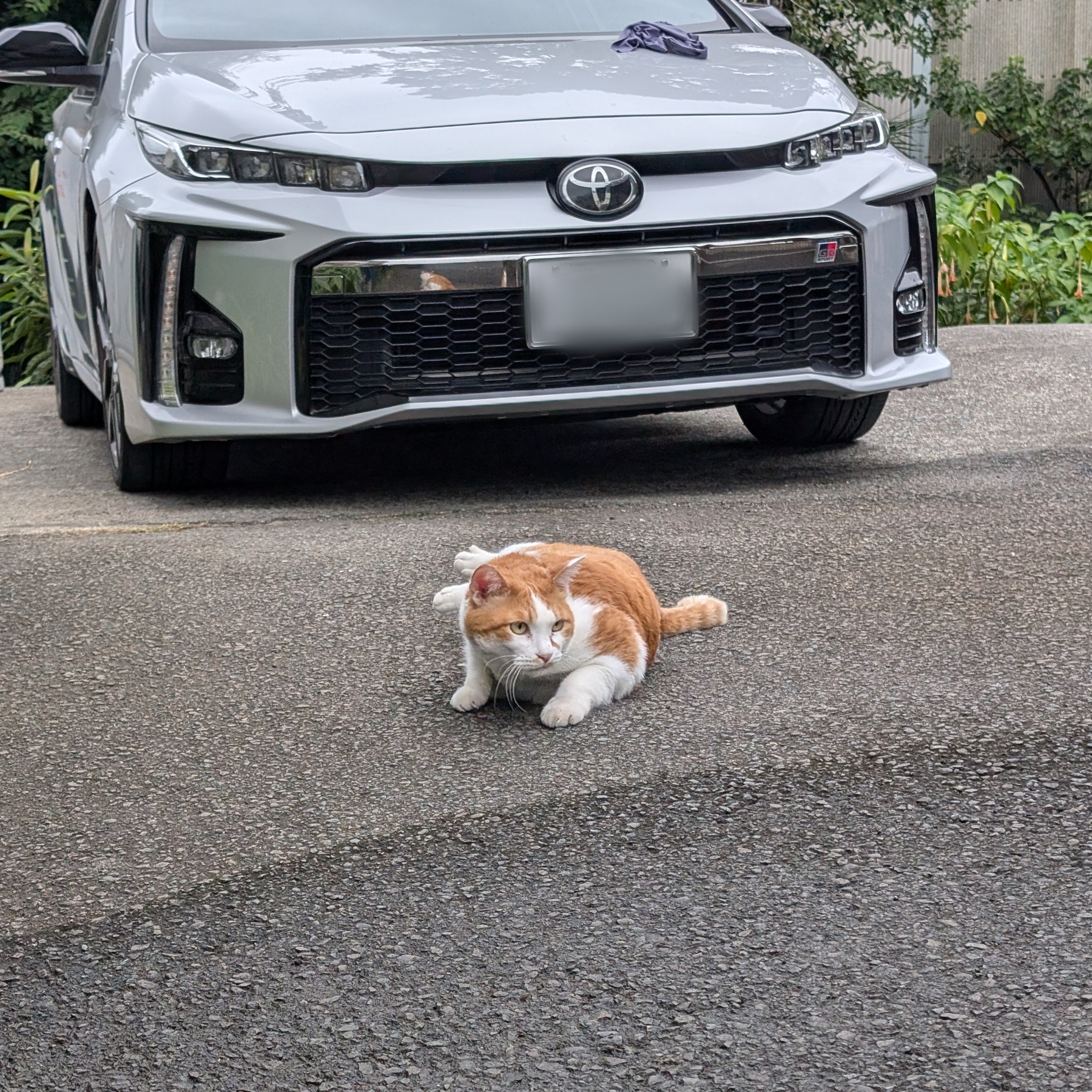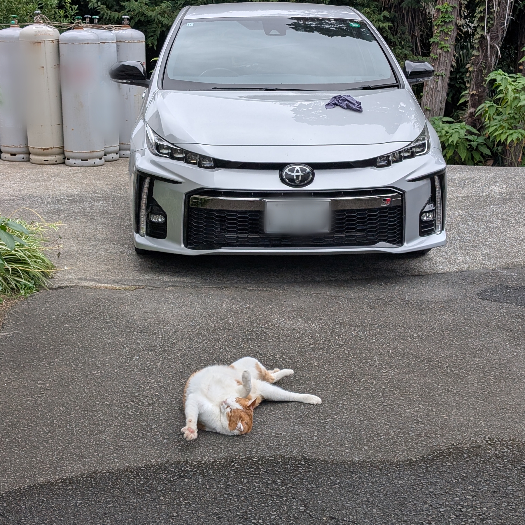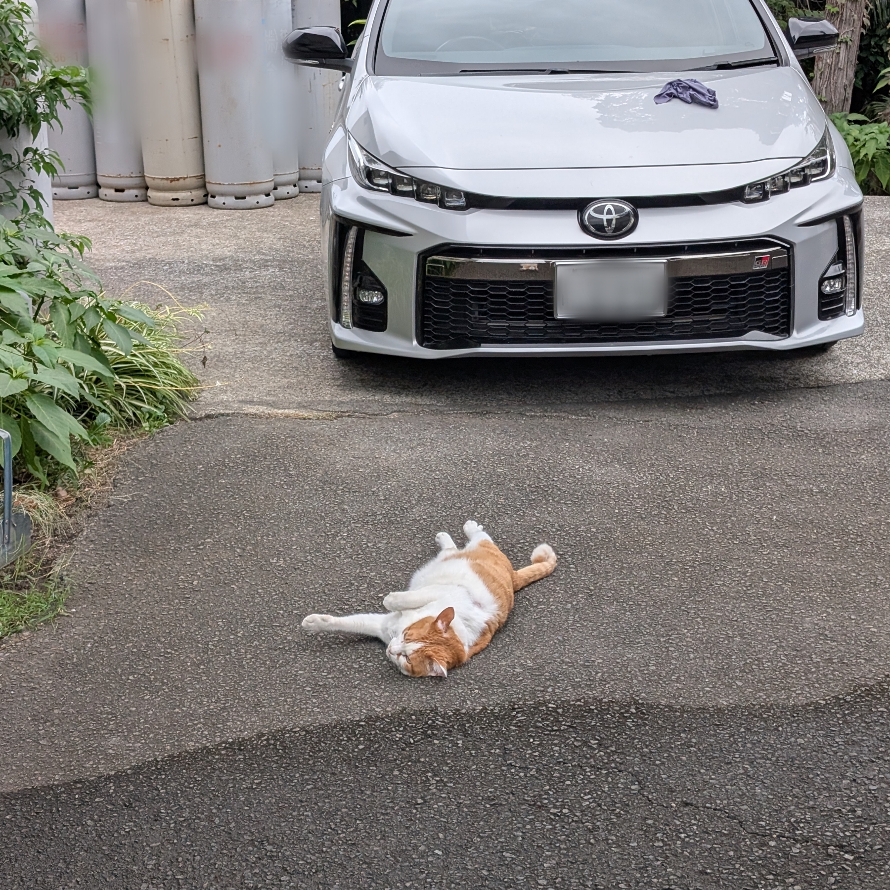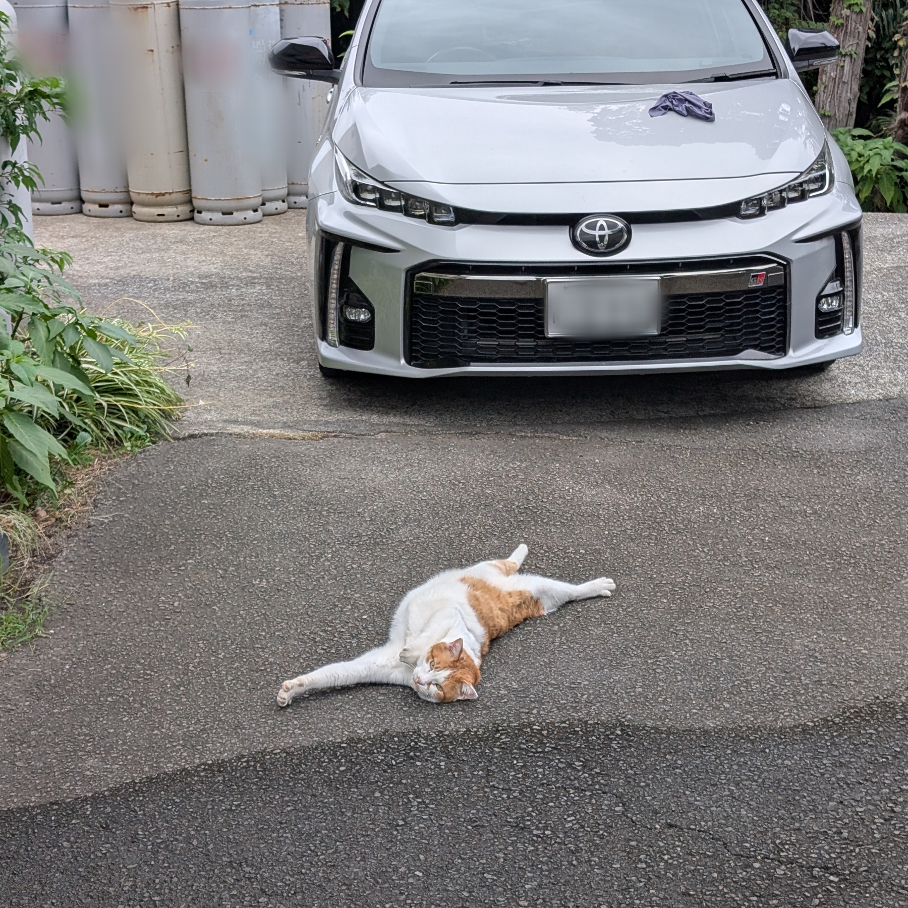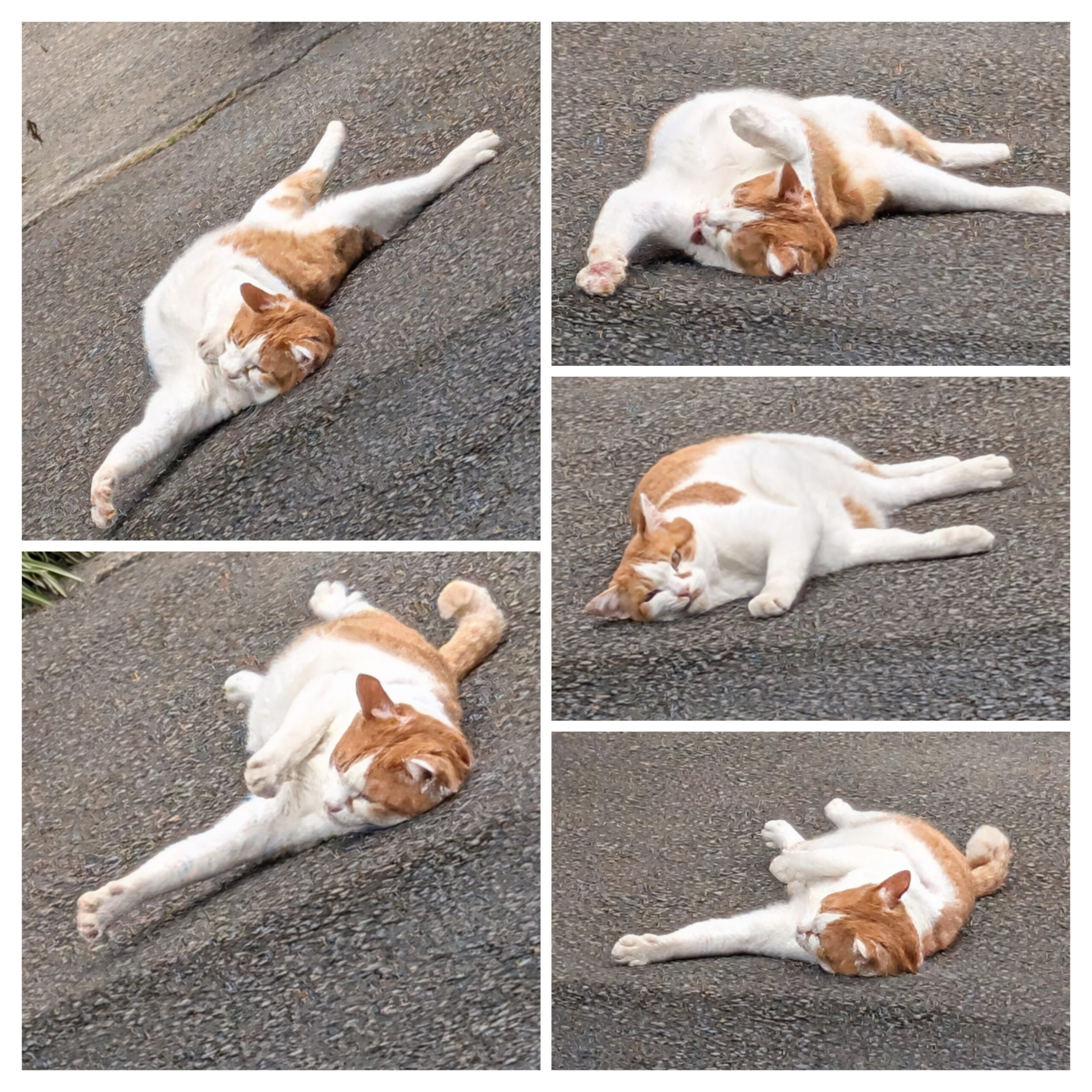近づいてみても警戒心なく、コンクリートの上でゴロゴロしたり、のび~んと伸びをしたり…