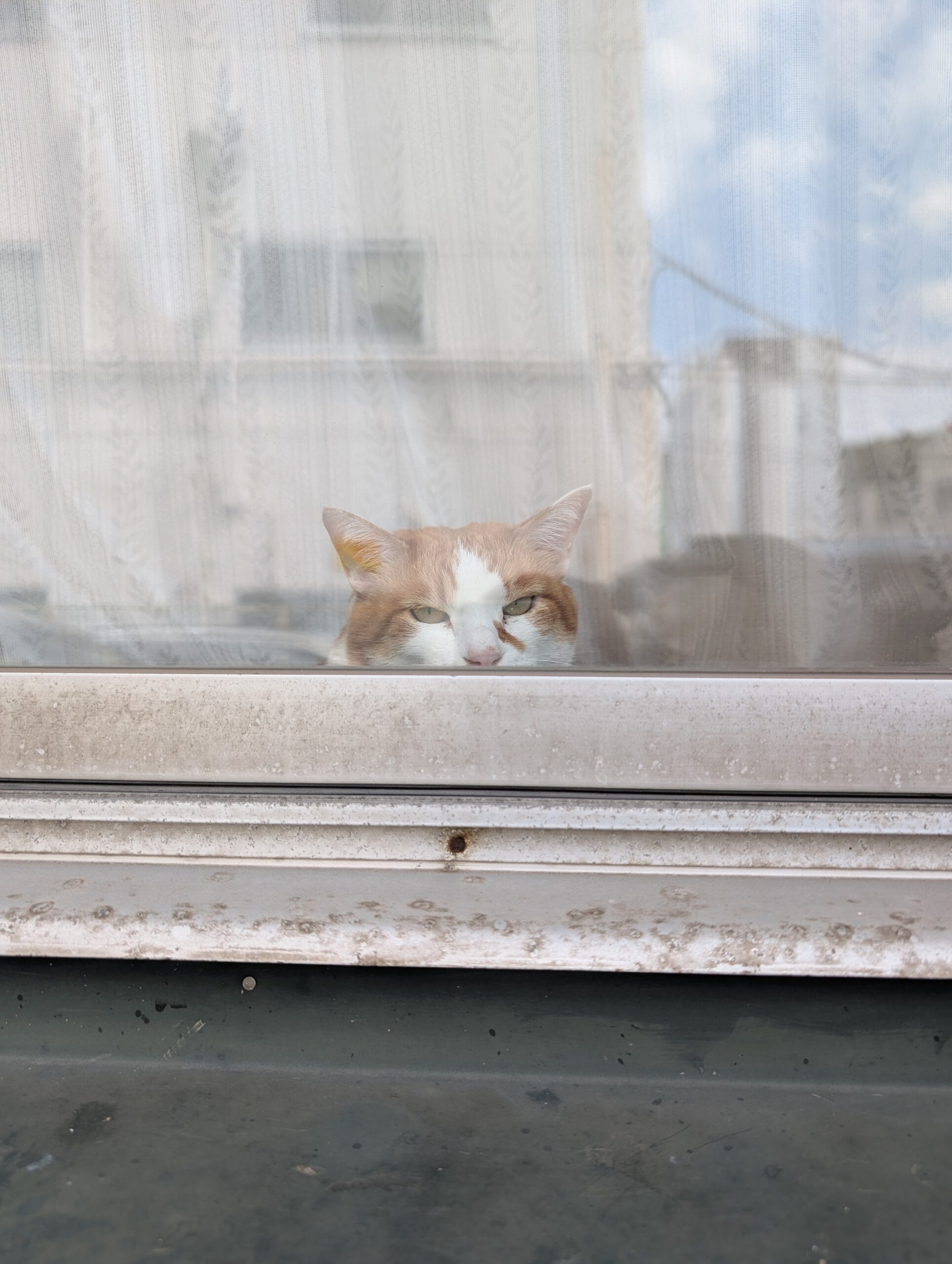 何度となくご紹介はしていますが、今回はお外からみたカーテン裏のチーコです!
