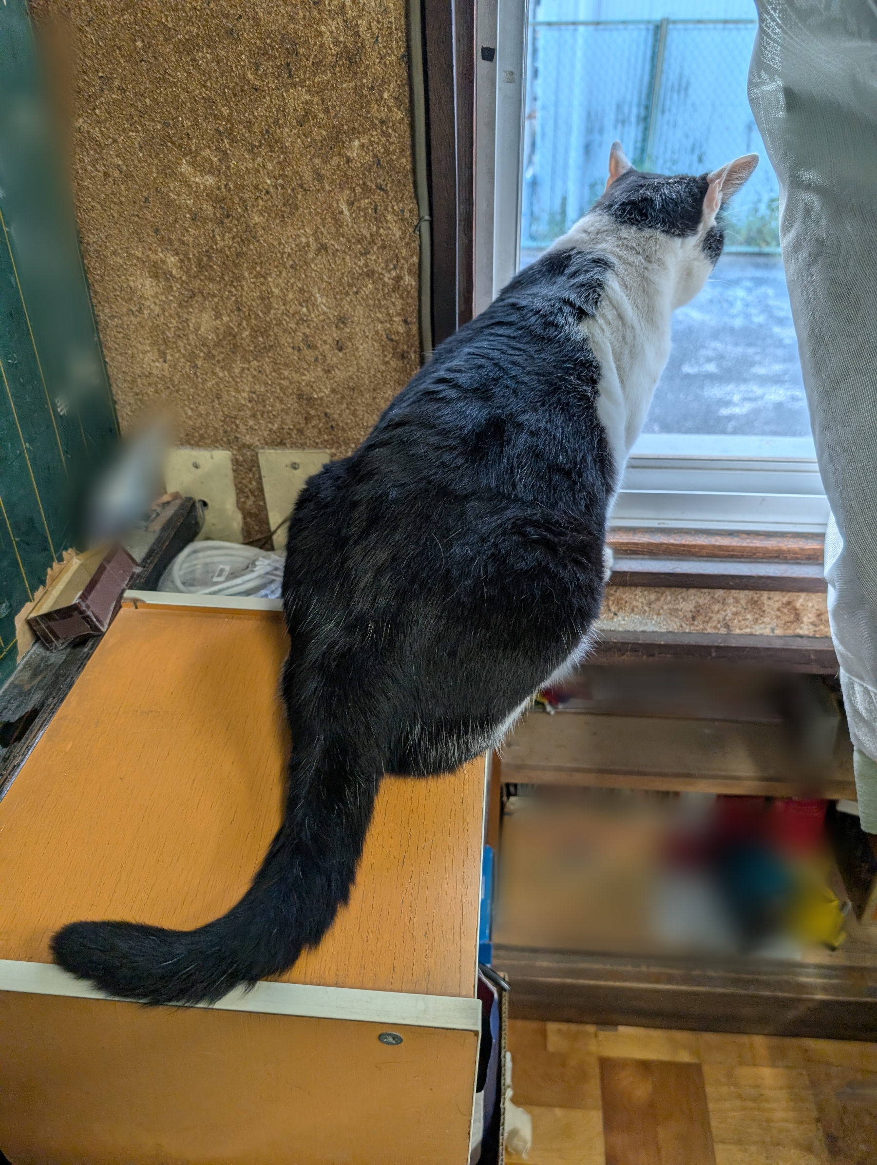 クロがいつものように窓のほうへ行きました。お外にいきたいのかなと暫く様子見をしていました。