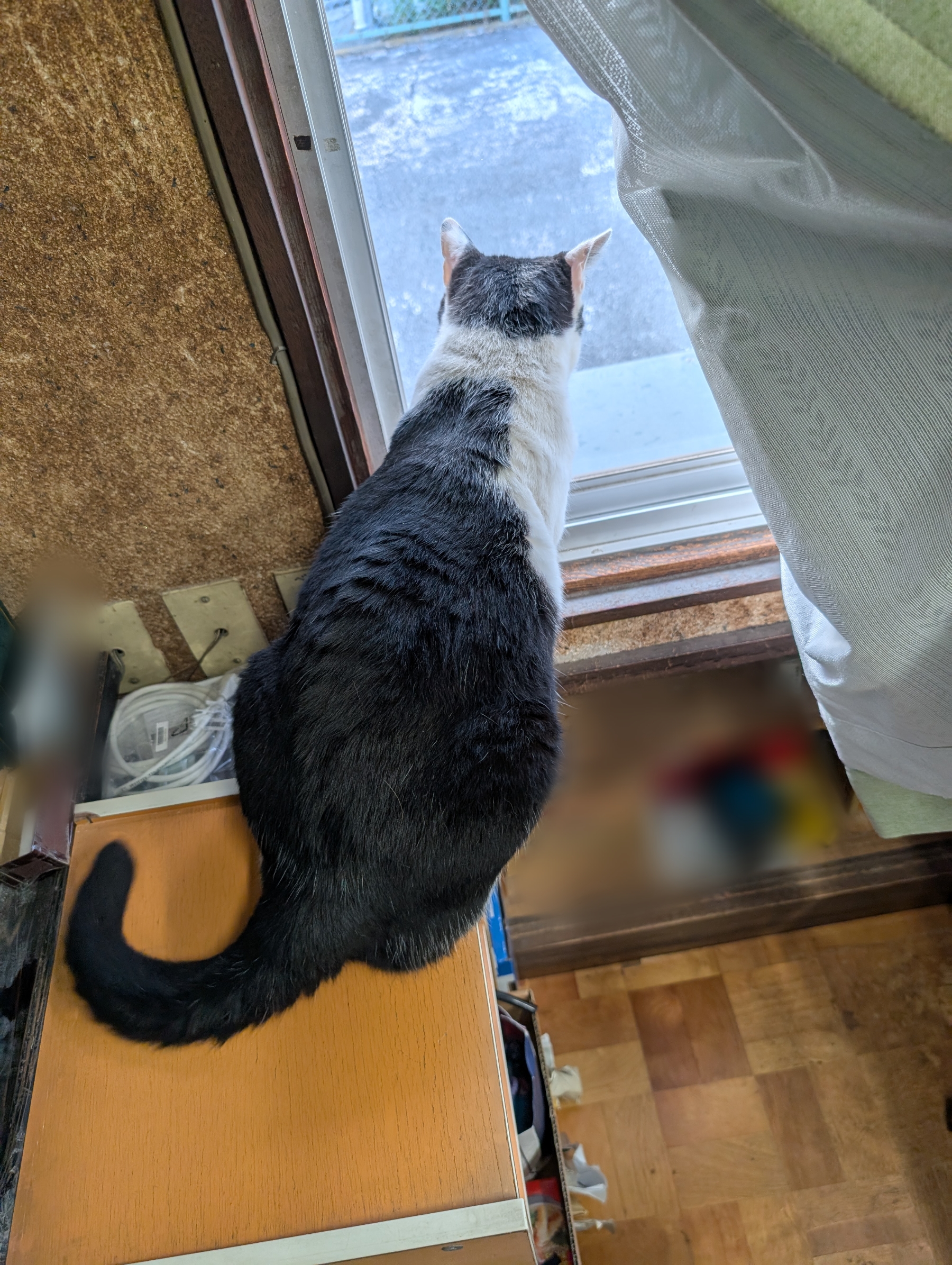 本日は、たわいもない、クロがずっと外を見ている話でした・・・。