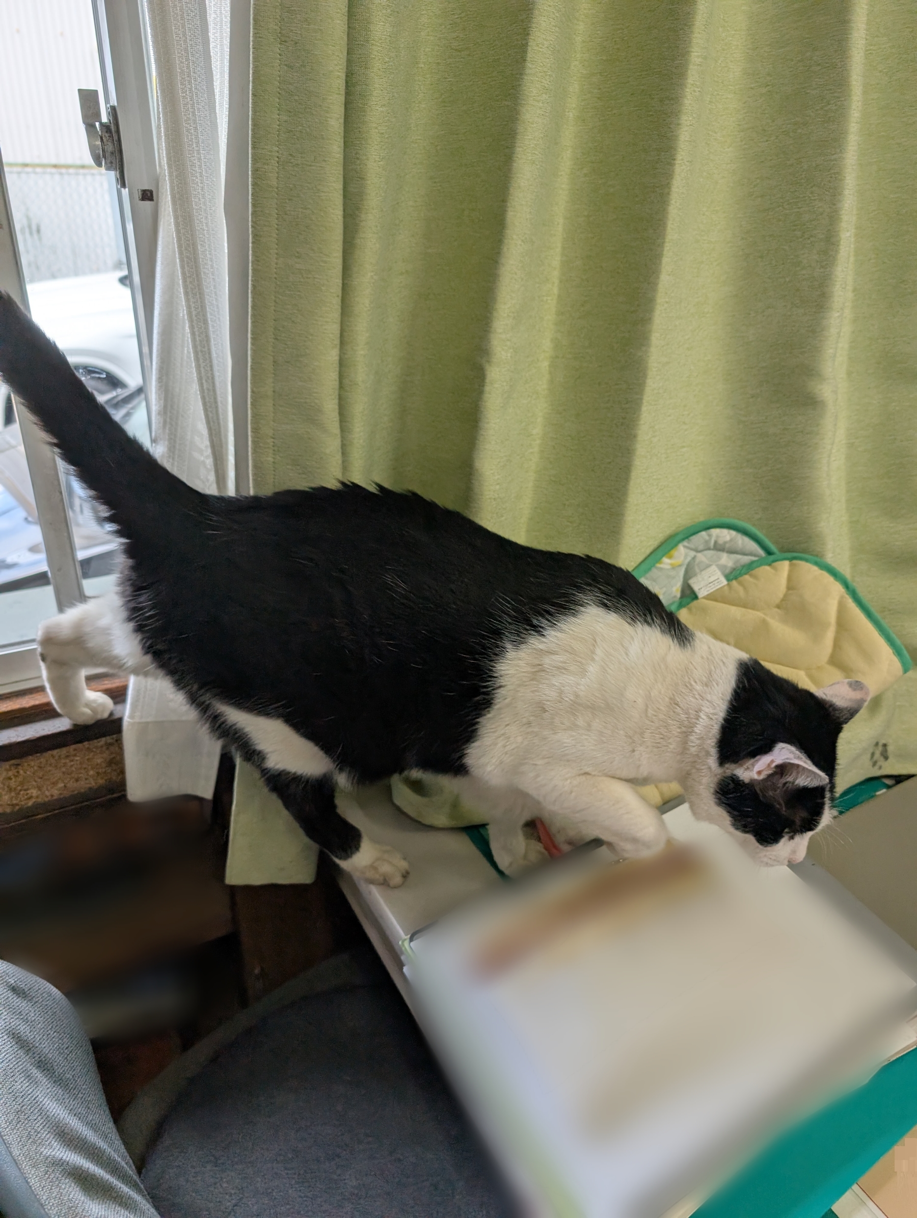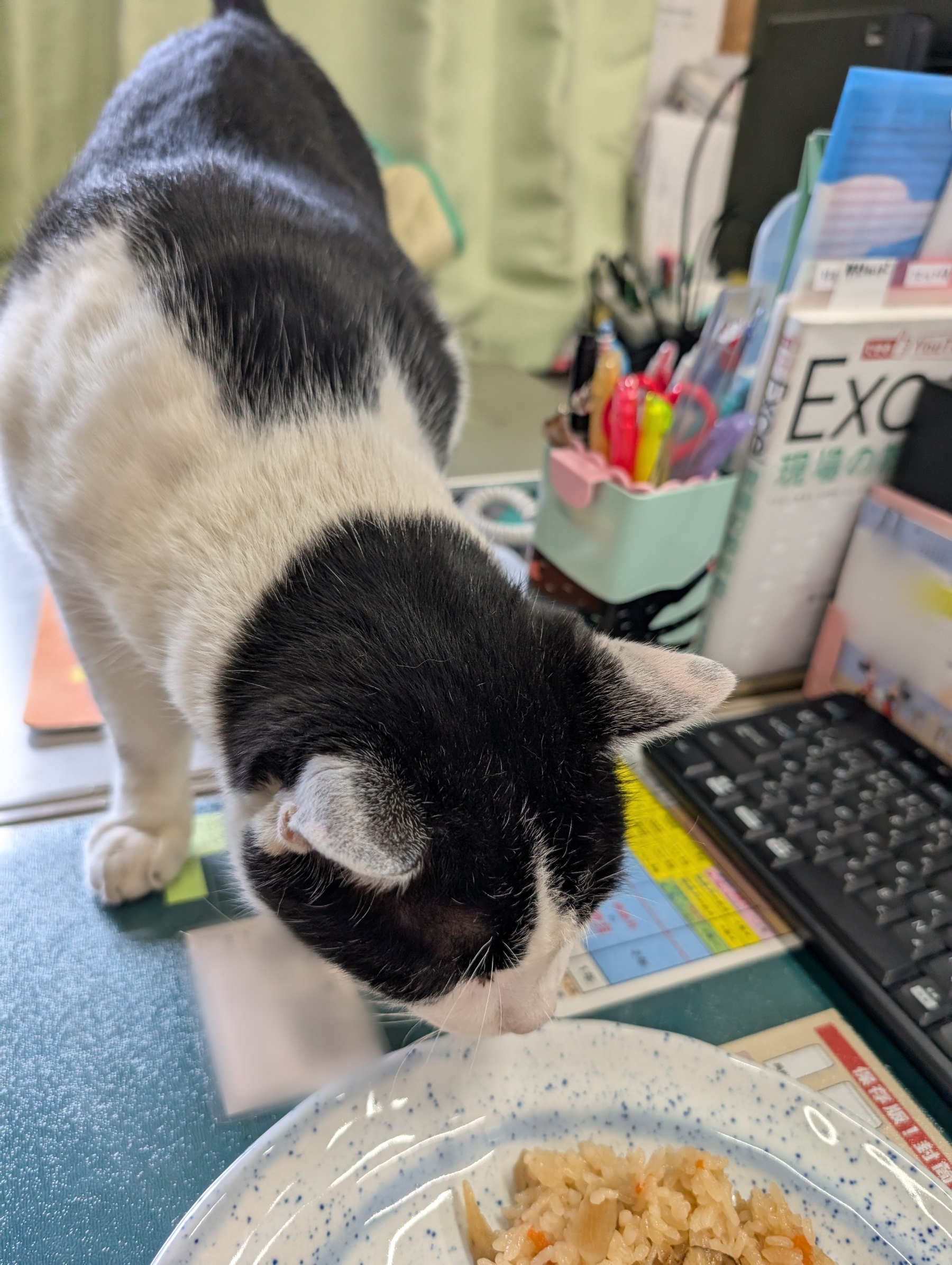 お昼休みになり、ご飯を食べようとしていたところ、匂い?!につられてか、クロがお外から帰ってきました🐾