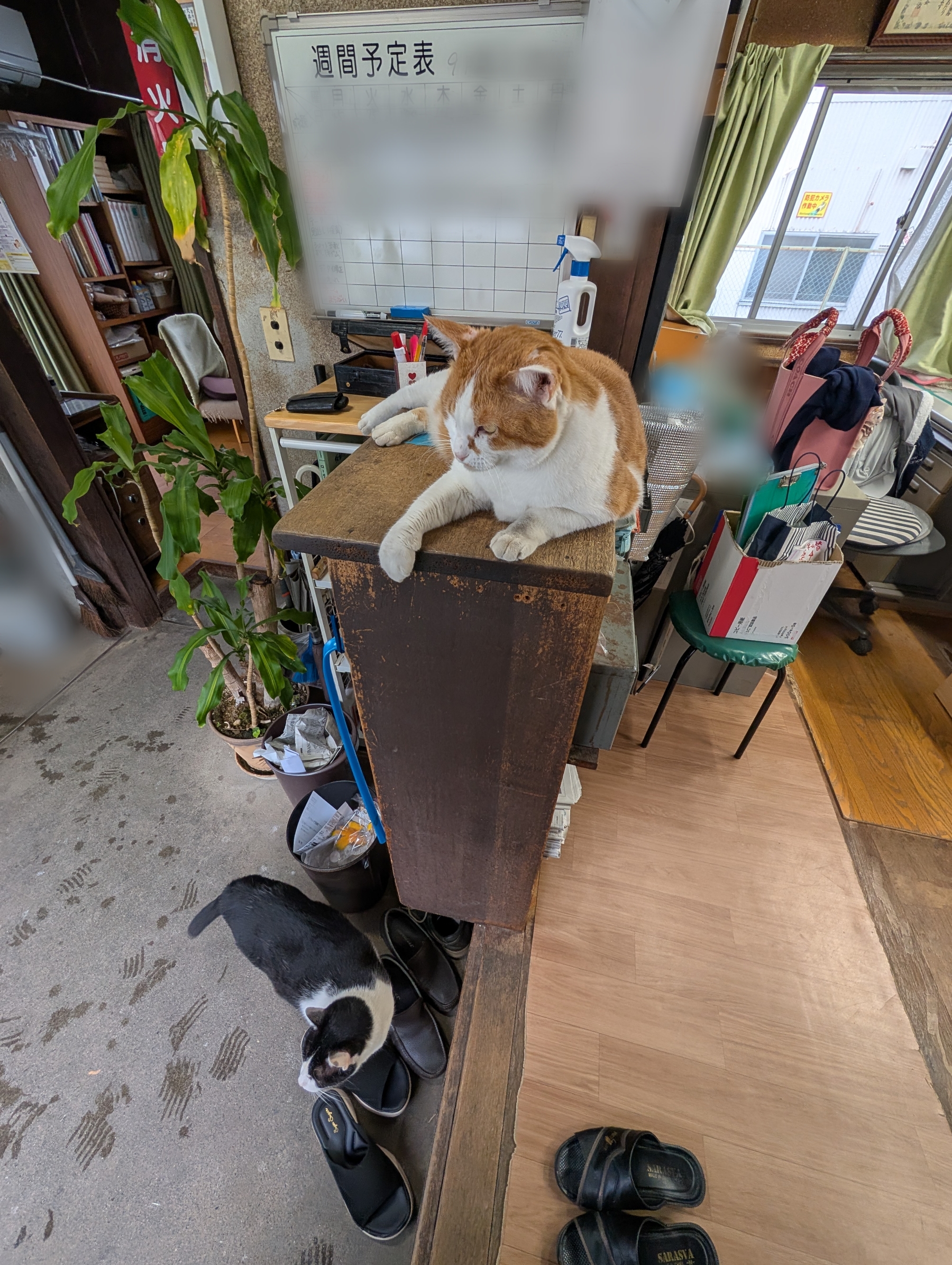 外では「寅」のつくベテランが洗車をしていて、二匹は戻ってくるのを待ち構えていたのでした!