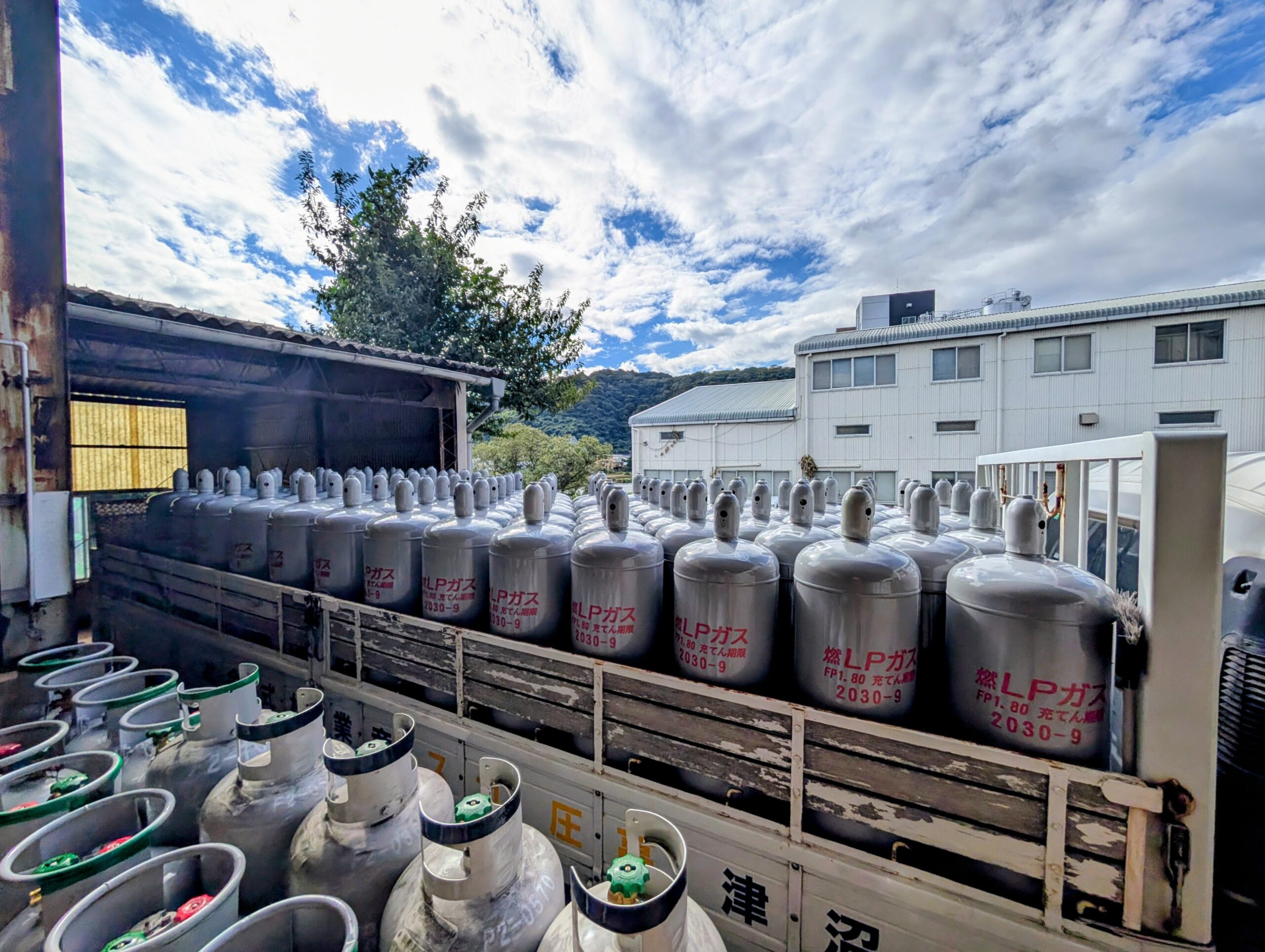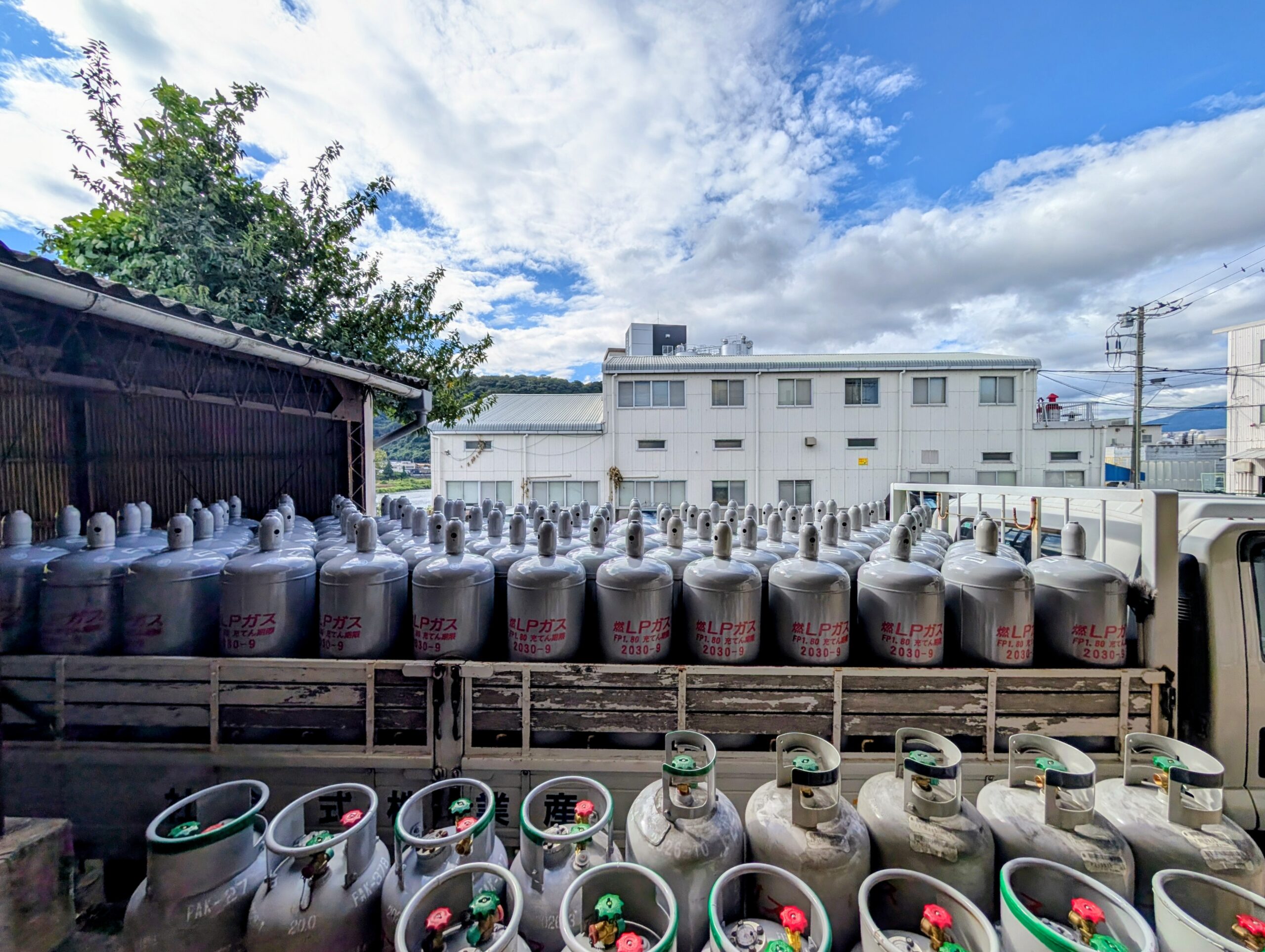 毎回思いますが、50㎏ボンベがきれいに整列して積まれているのは圧巻です!