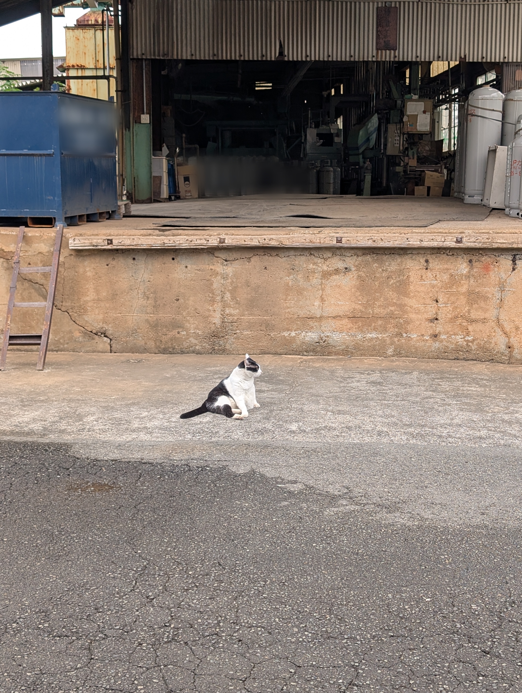 クロが見ているのは、弊社のトラックが製造工場へ駐車している光景です!