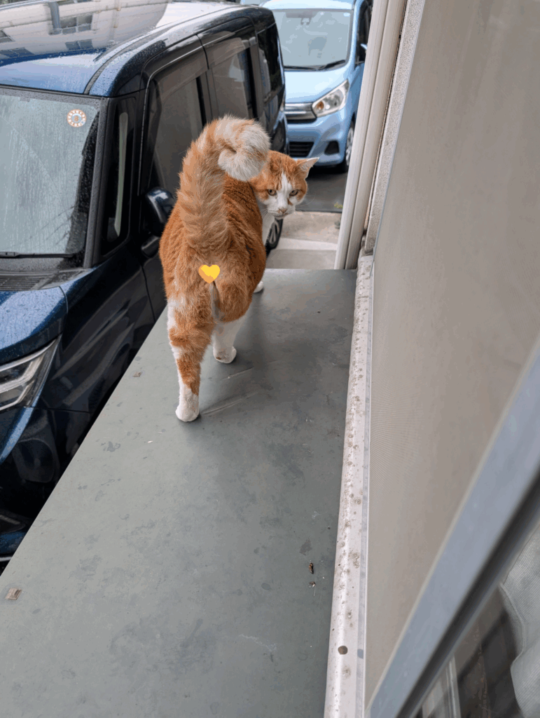 トーレーマークの💛幸せのカギ尻尾💛を主張しながら、振り向き、行ってくるニャ!なチーコでした!!