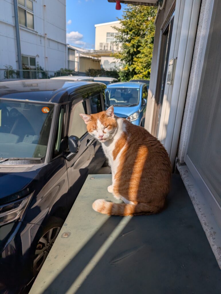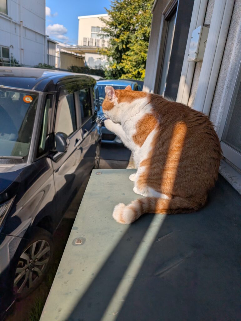 食べ終わった後、日向ぼっこしながら、ダイエットはしないニャって言いそうなチーコでした!