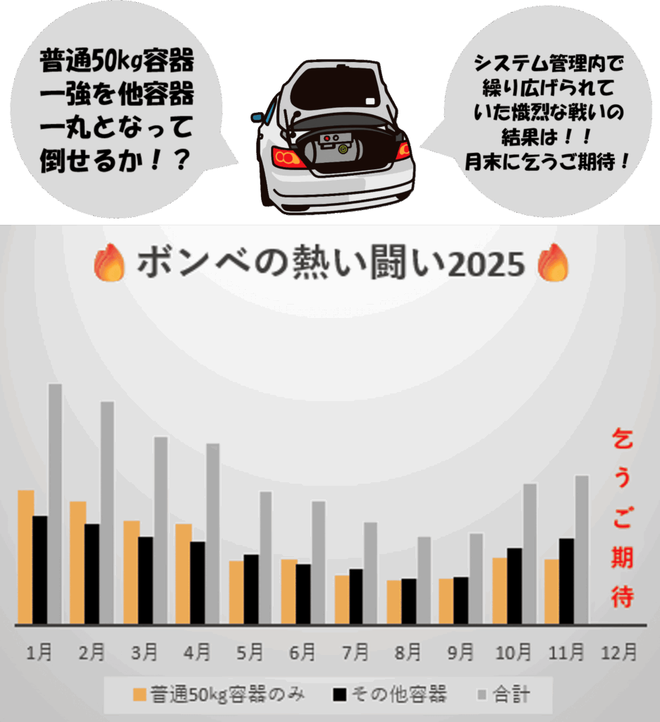 閑散期、繁忙期により、受入数が夏場と冬場では違います・・・。積み重ねのトータル数ですと50㎏容器の圧勝で戦いになりません😿