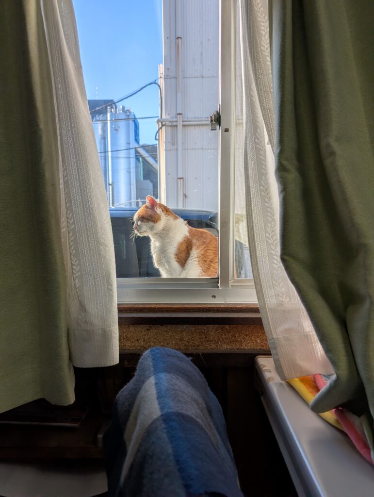 結局開けても入らないチーコでした💦この時期は窓を開けると冷気が一気に入ってくるため、率先して入らない時はすぐ窓を閉めます・・・。