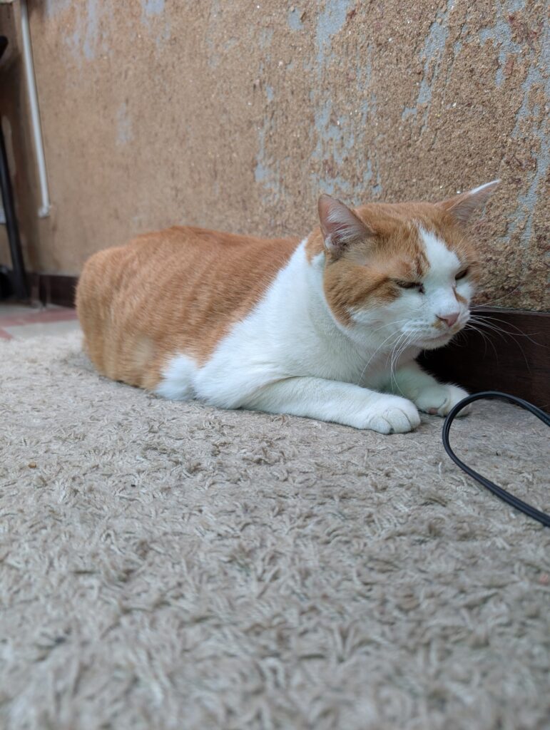 別のポーズでも寛ぐチーコ💛壁際ギリギリ選手権を開催しているようです😸
