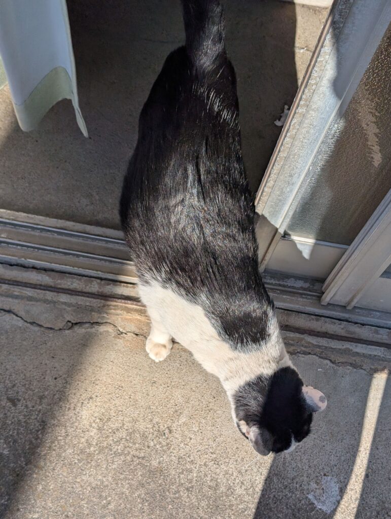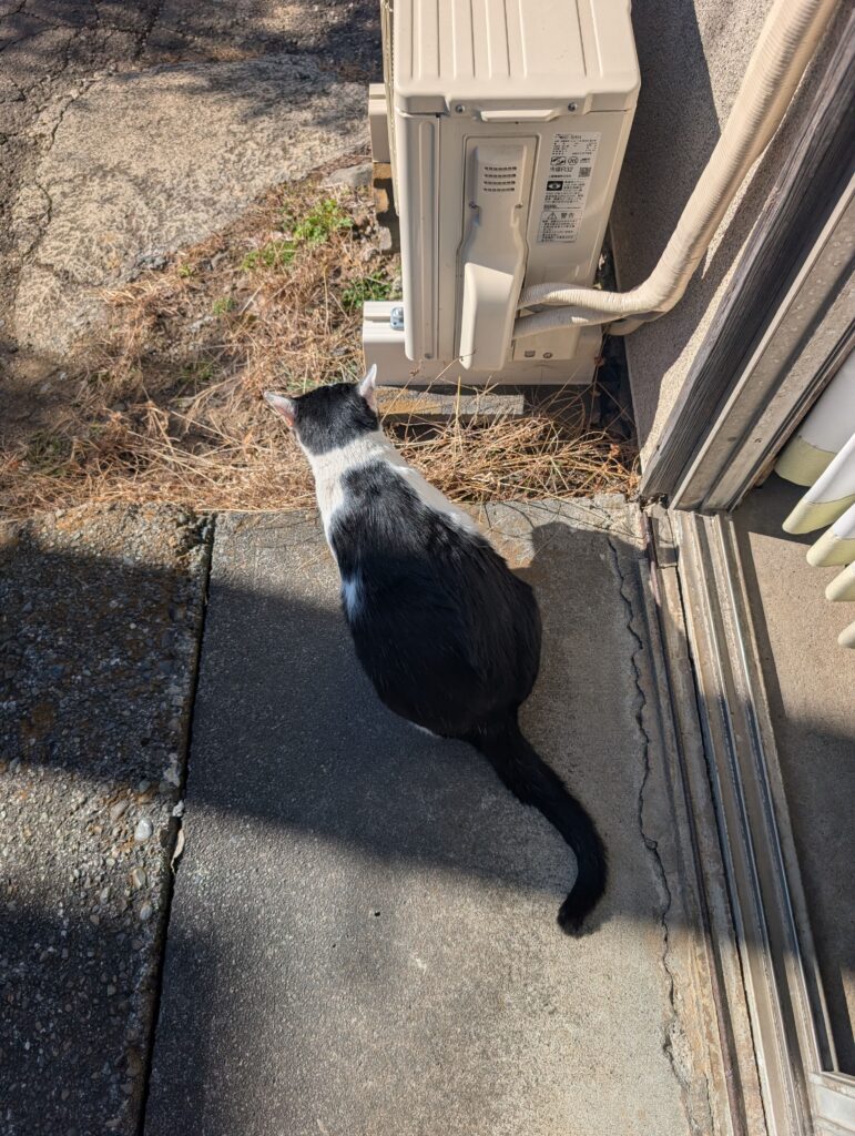 時刻はまだお昼の12:39です。さすがに早いかな?と思いつつも、クロはしっかりと“大好きなみんニャが来る方向”を確認していました😍