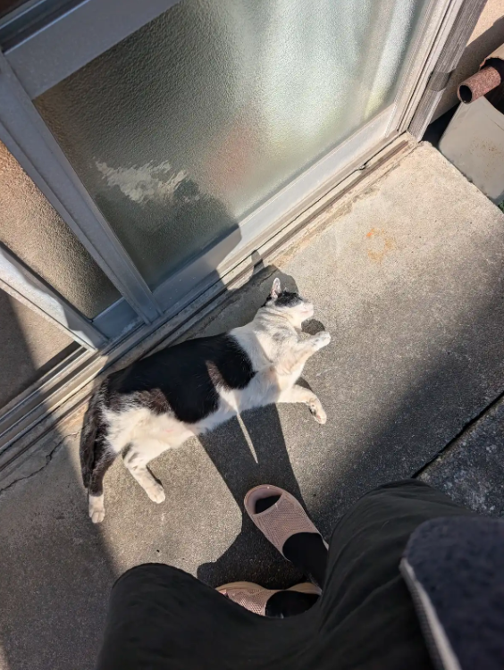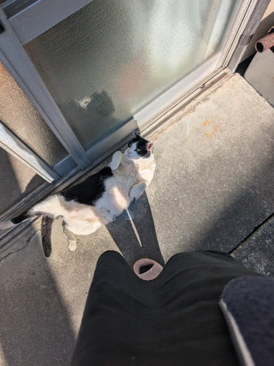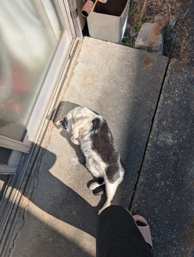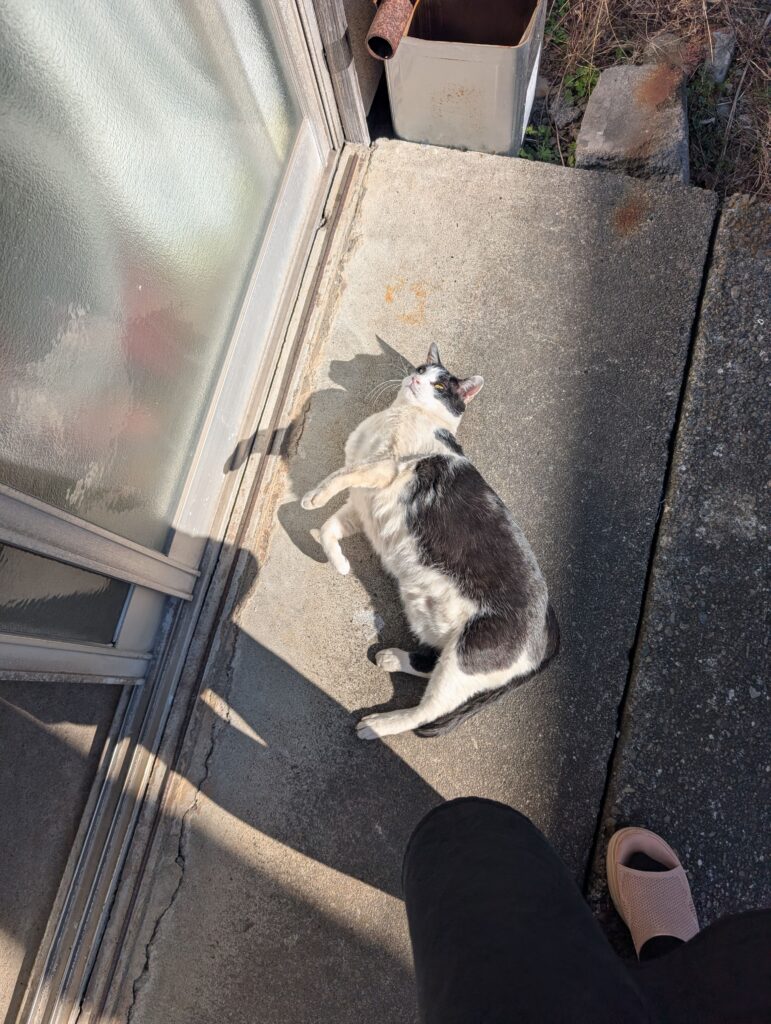 出た先はコンクリート。ここで始まるのが、猫あるあるの“ゴロゴロタイム”です。