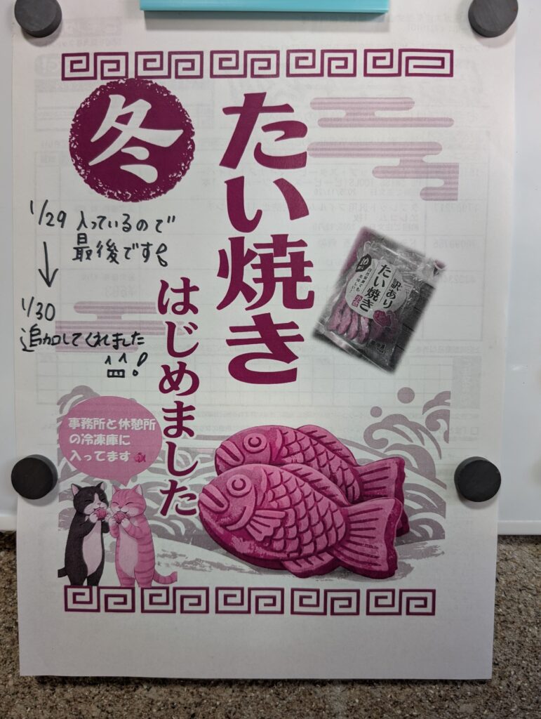 事務所と休憩所の冷凍庫、まだまだたい焼き、あります🐟✨