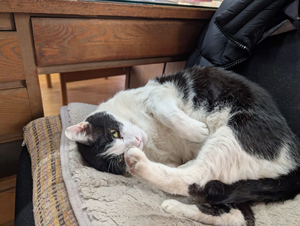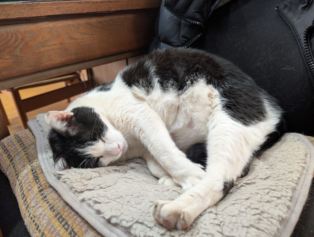 出してスッキリ!なクロはいつも大好きなねずみ取役席で快適に丸まってました😴
